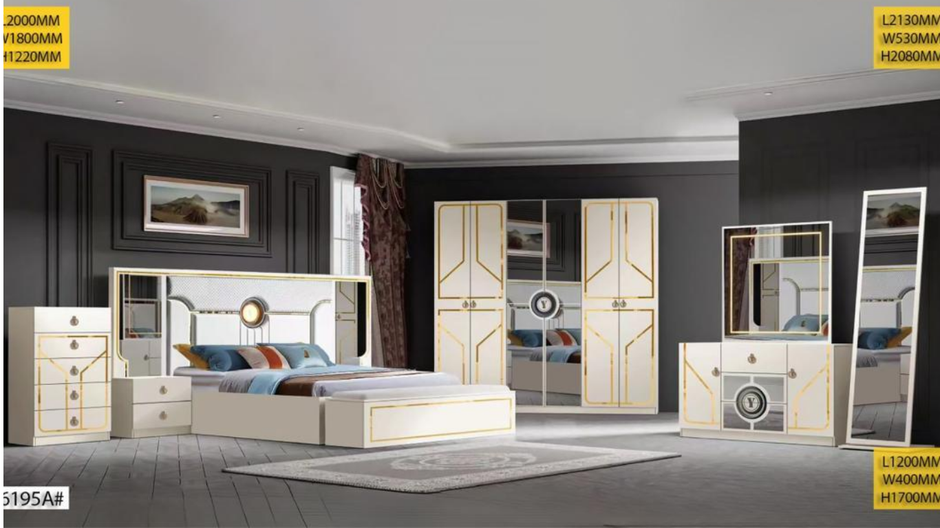 🛏️ Chambre à coucher 6 battants – Ensemble 6 pièces